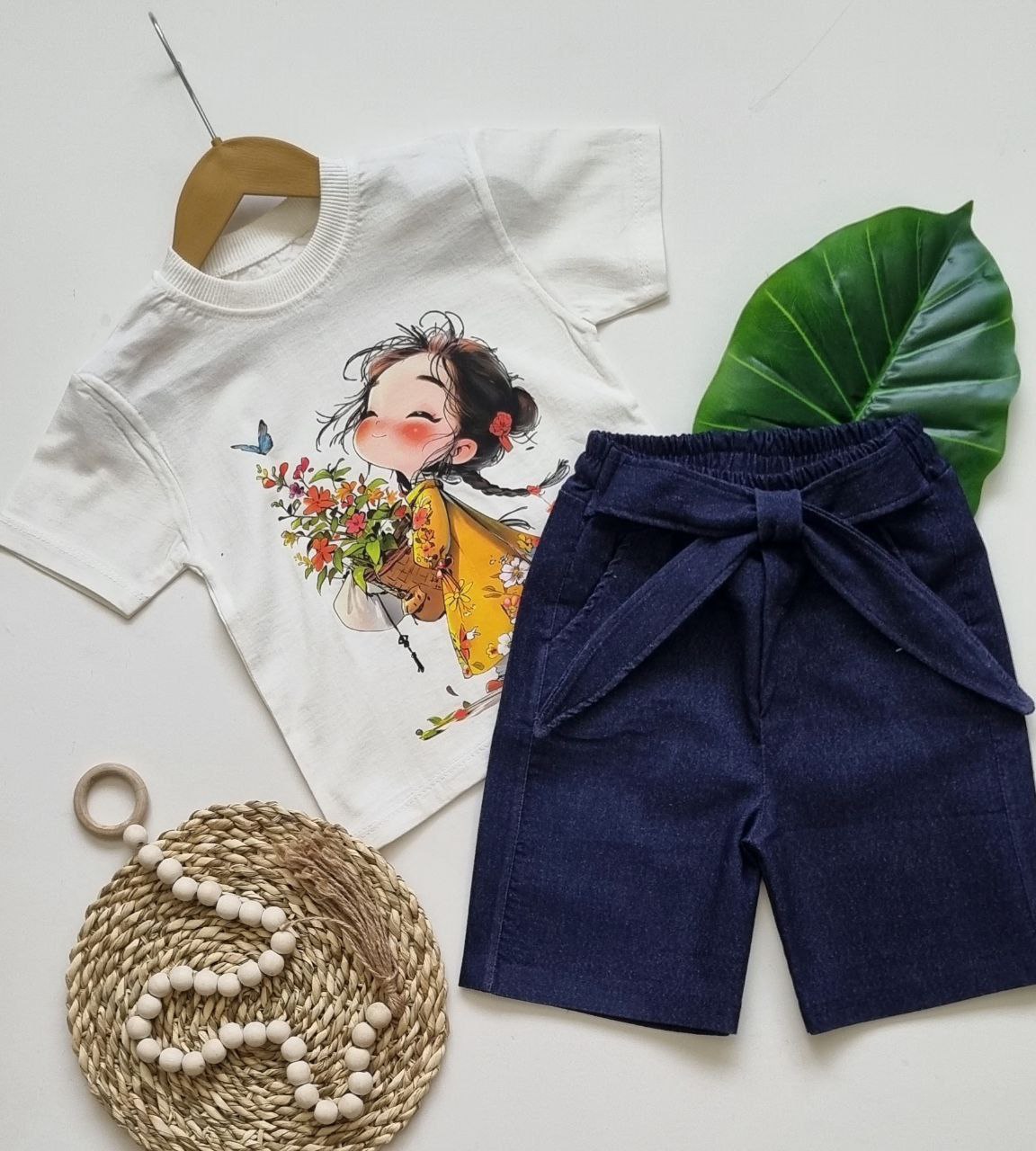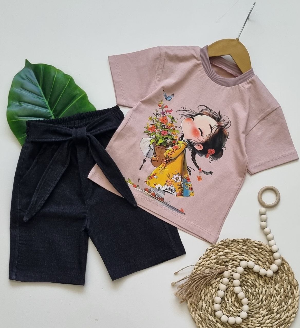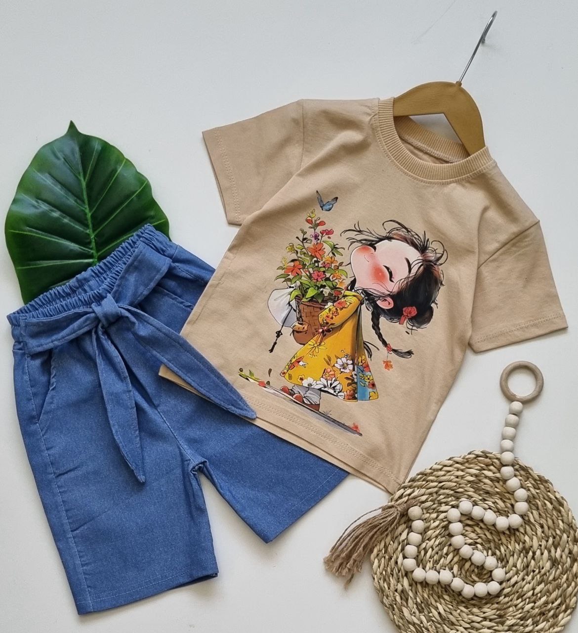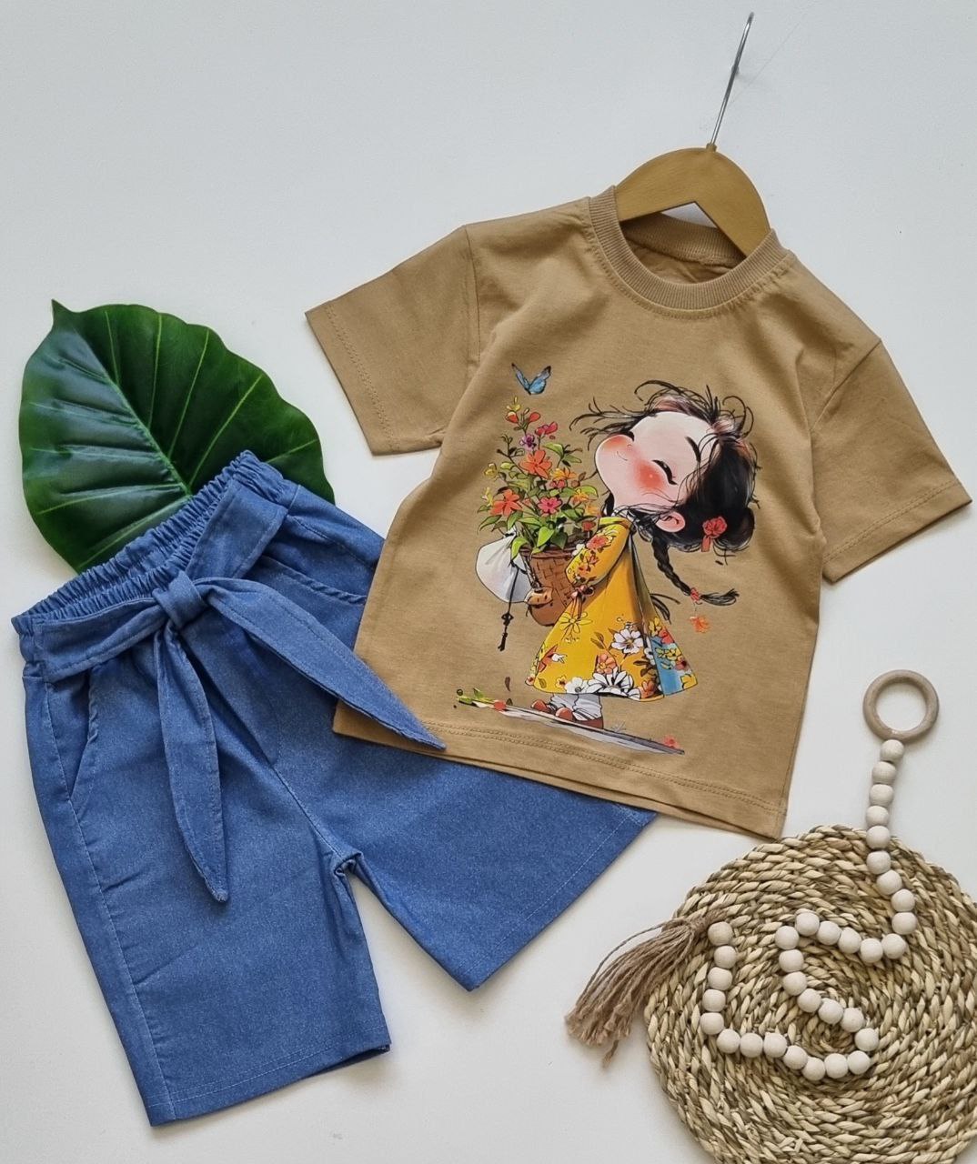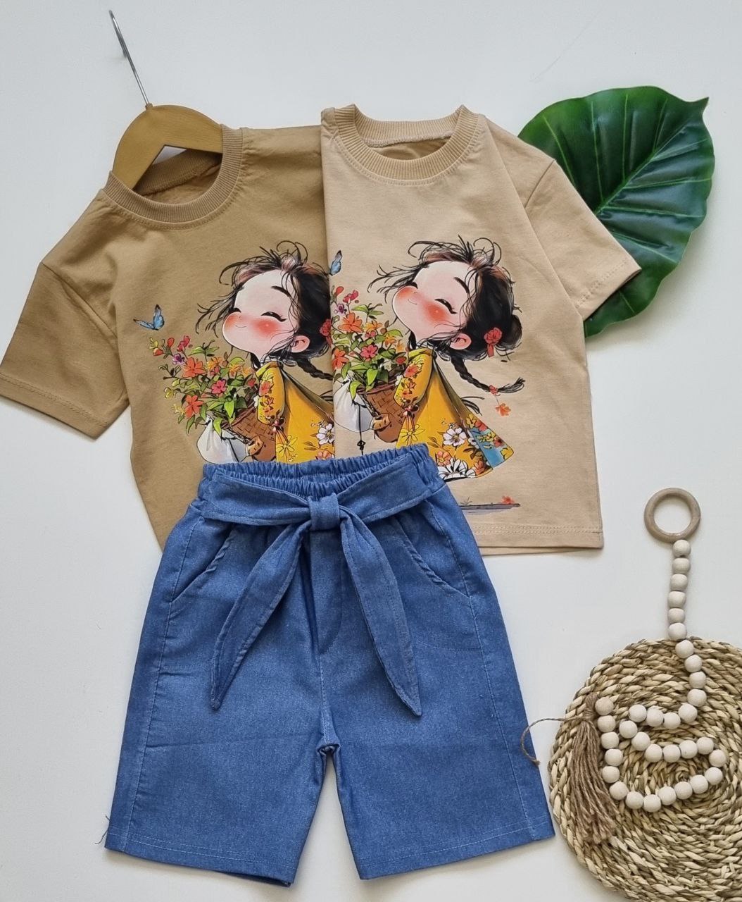 ست تی شرت و شلوارک دخترانه (قیمت جین)